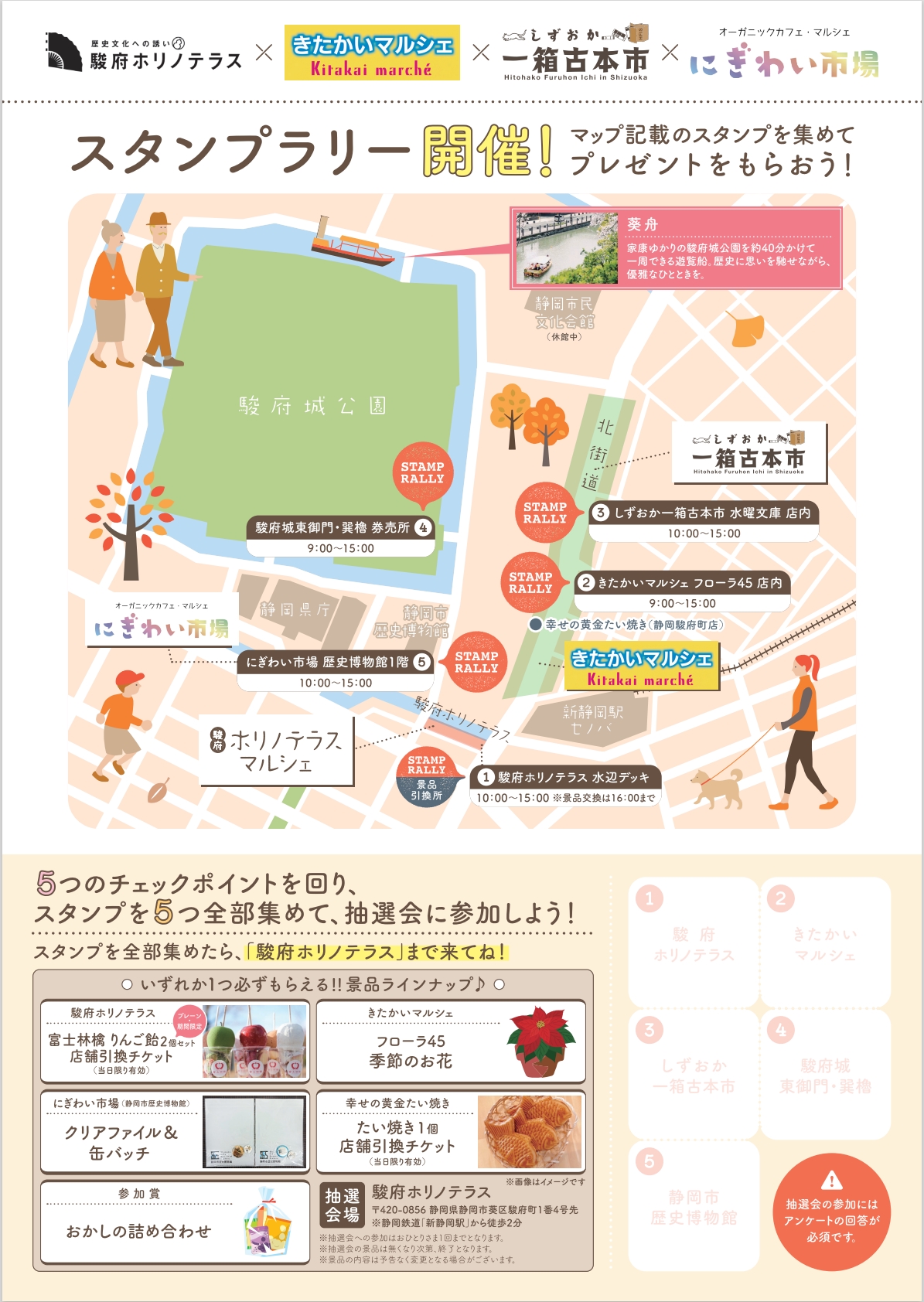 さらに、静岡市葵区の御伝鷹エリアと駿府町エリアにおいて、スタンプラリーイベントも企画しております。