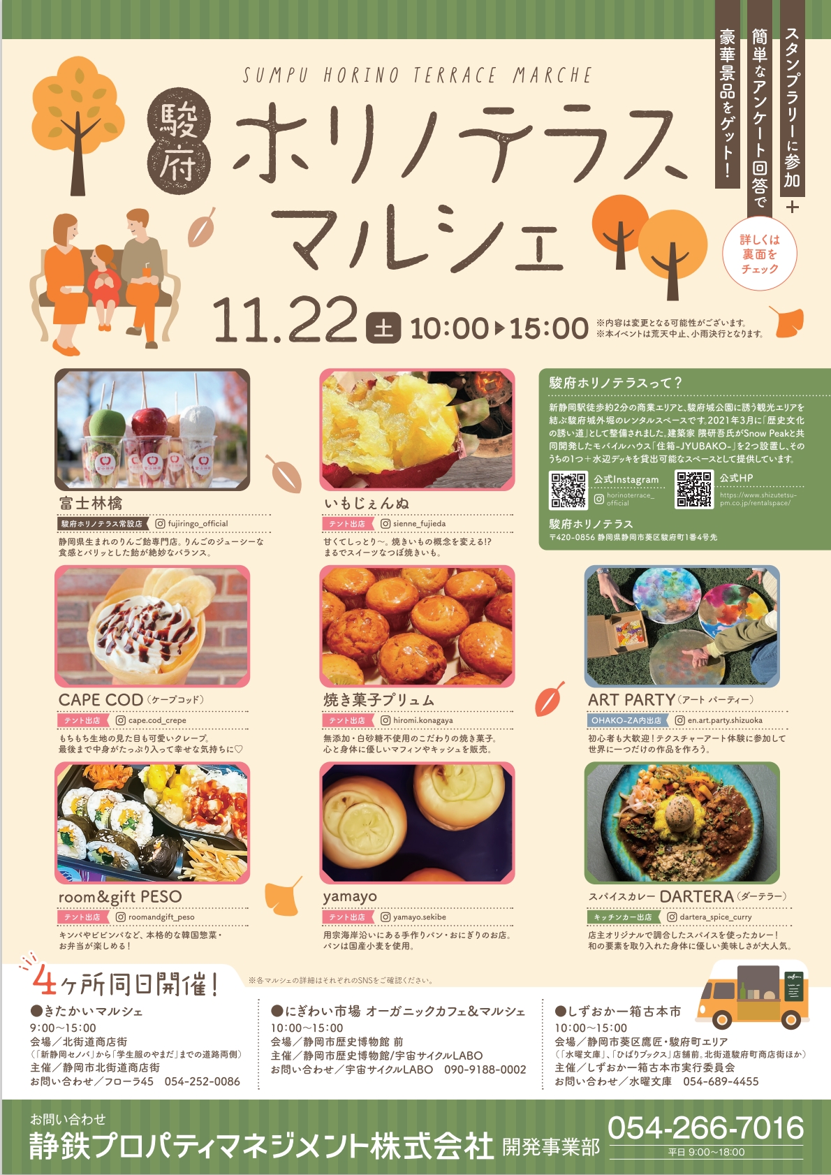 ①駿府ホリノテラスマルシェ(静岡県静岡市葵区駿府町1番4号先※新静岡セノバ前)