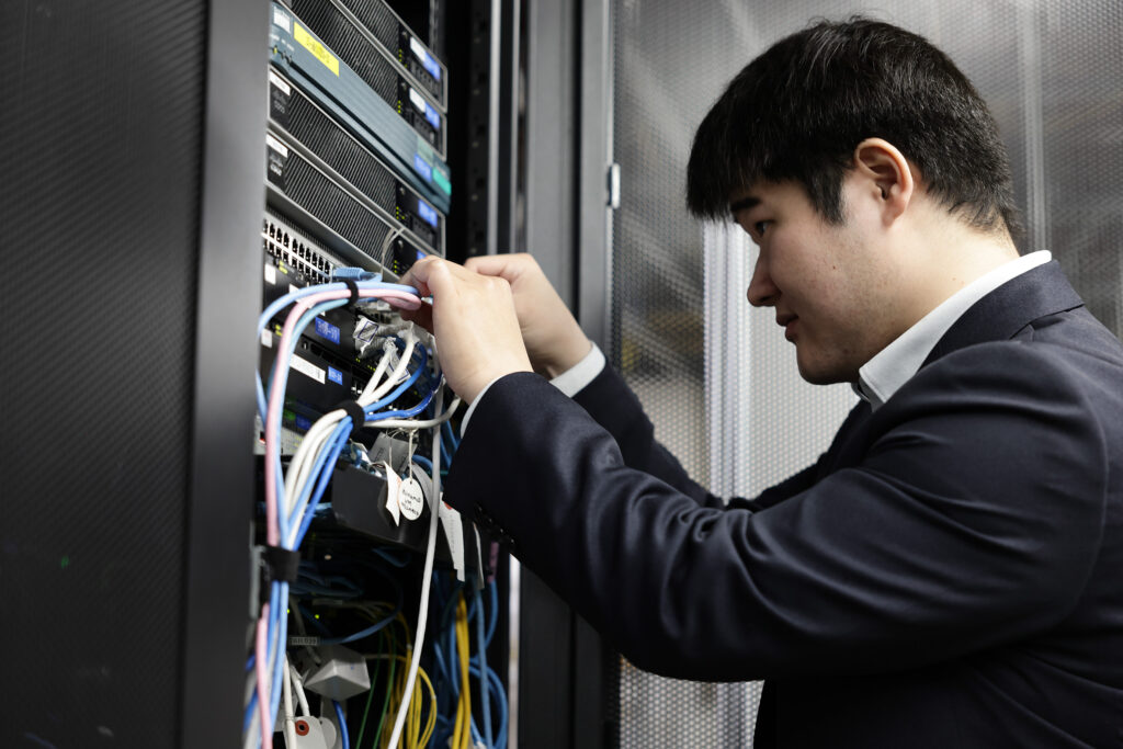 企業内のネットワークの設計や機器の設置などを行う仕事です。当社の場合はこれに加えて運用保守や障害対応も行っているので、一般的なネットワークエンジニアよりはるかに社外に出ていくことが多いと思います。他社では経験させてもらえないようなことも幅広く経験してスキルを磨いています。