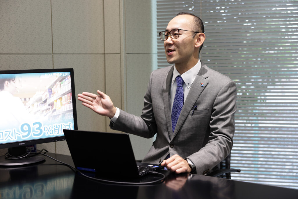 販売管理や倉庫管理といった事業の軸となる基幹システムを提案・販売しています。一昨年からは先輩と2人で、今会社が力を入れている「PDA売価チェックシステム」の販売に取り組んでいます。初めてこのシステムのスピードを見た時は衝撃でしたね。他社にない魅力的な商品で、これは売っていくべきだと思いました。PR動画を自分から提案して作り直し、社外のプレゼンコンテストで2位になったんですよ。展示会でも反響がとても良く、大きな可能性を感じています。